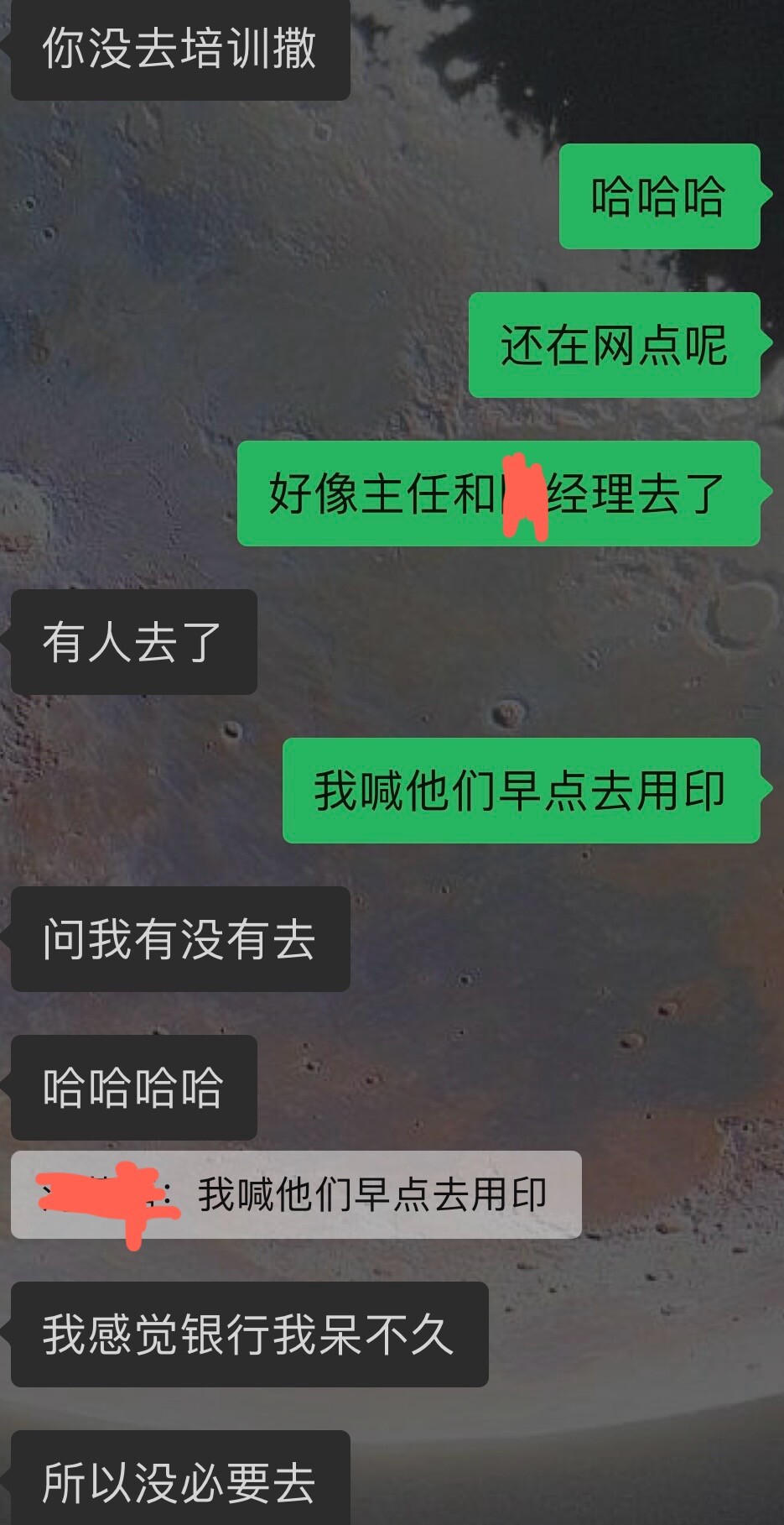 又想杀了支行领导,妈呀问我昨天怎么不问消息怎么不回,你妈的傻逼吧七点钟给我发消息,再说了我忙得半死啥都该我干我是有几只手吗
