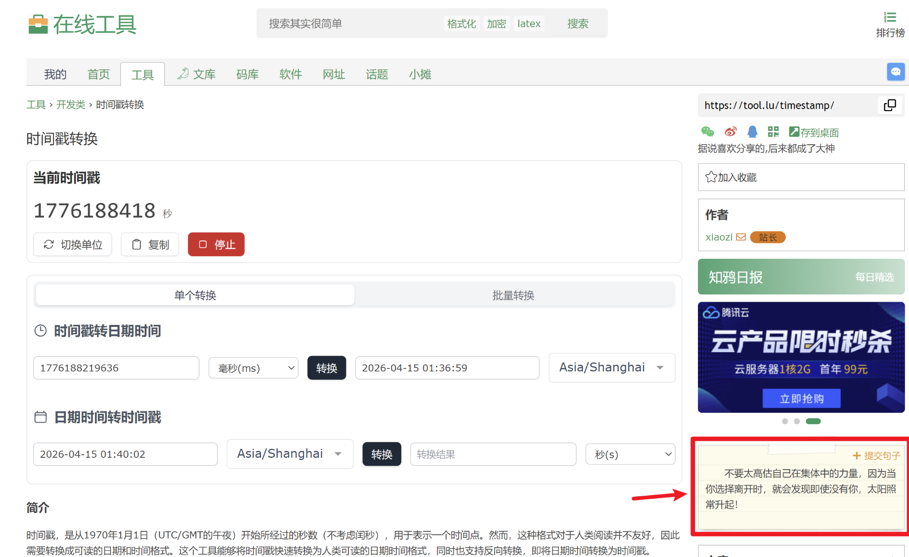 这个工具网站怎么在说一些毒鸡汤般的怪话...