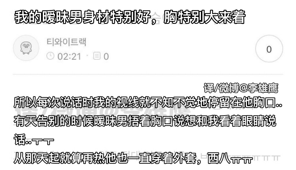 我的暧昧男总觉得自己身材特别好,说自己胸特别大来着,每次跟他说话时他都希望我视线不知不觉停留在他胸口。有天告别时,他捂着眼睛说想我看着他胸口说话……从那天起天气就算再冷他也不穿上衣,pyon ​​​