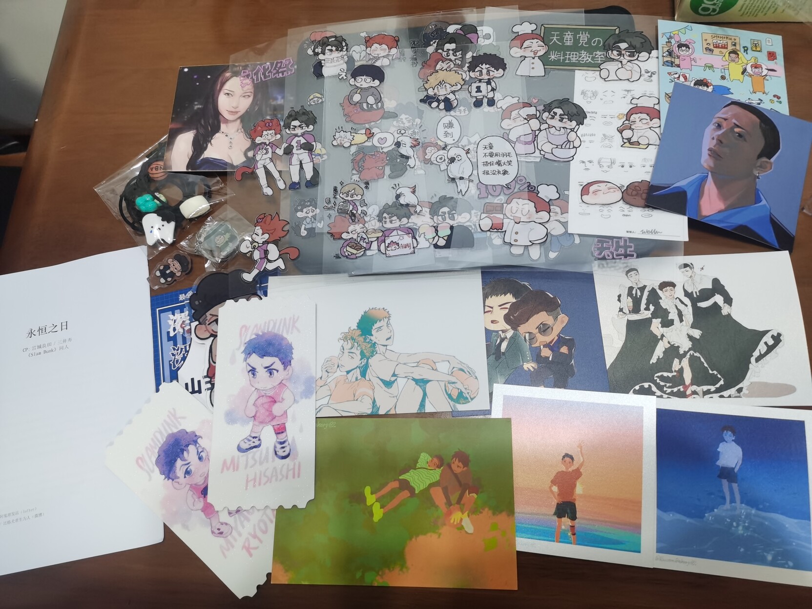 终于能够repo友友的大礼包!!拆开的时候真的震撼,层层叠叠的圈……都是缘分(抹泪)捧着《永恒之日》快乐咀嚼,很喜欢这篇里无论是三井还是宫城都有的那种……坦然里有点拘谨的态度,人在爱里局促时的样子,一方面是注意到这次仍占据自己,另一方面是不清楚对方是否也分享着同样的情绪。但宫和三又都是没有弯弯绕绕心思的人,所以他俩的情意吃起来也非常爽利,这样的爽有一点点用指尖抚玩刚结痂伤口的感觉(我喜欢,嗯…)但又清爽干净,说操就操(嗯,这个也喜欢…)读这一篇时回忆起了第一次读友友的文是在港圈,好像又站在熟悉的晚风里,很快乐。感谢友友的大礼包,希望友友健康快乐!!!