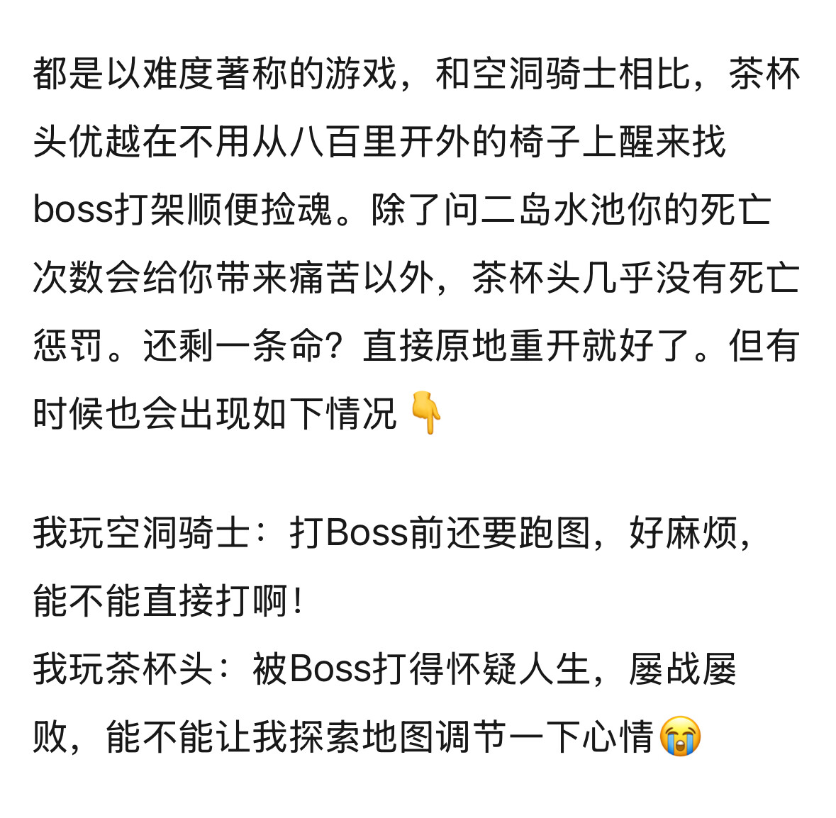 回看我23年打完空洞骑士再打茶杯头发的帖子,笑死我了