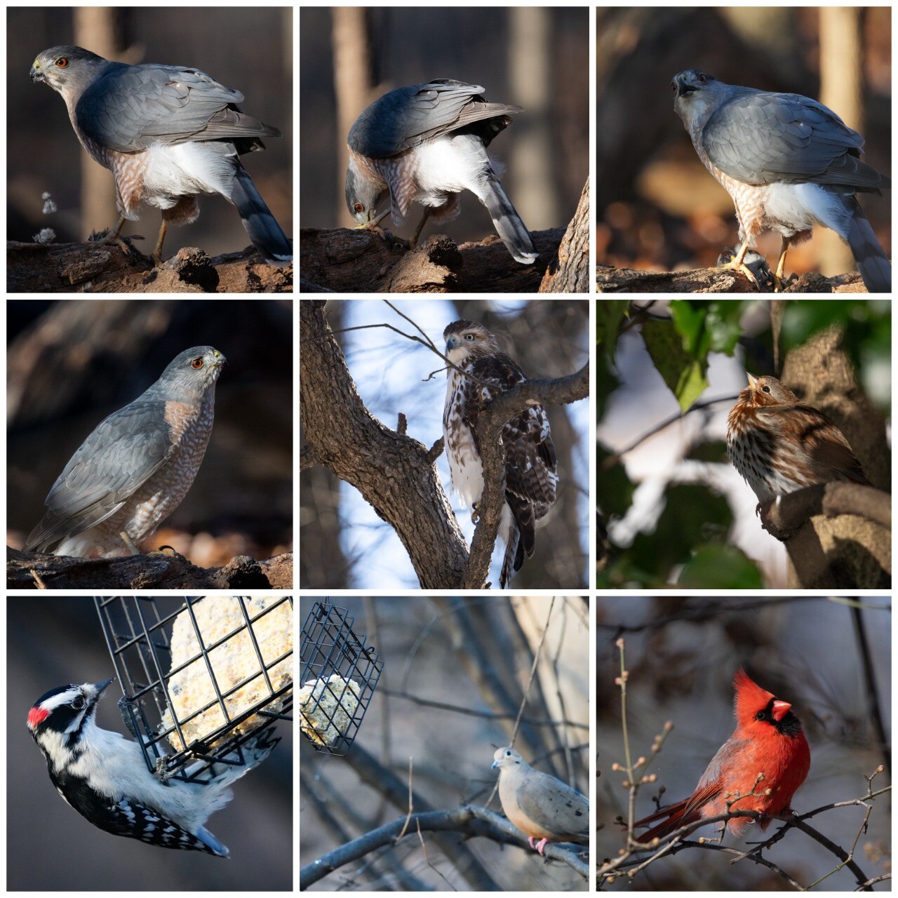 开始观鸟后第一次去中央公园,入园看到的第一只鸟(灌木丛中的house sparrow不算)就是红尾鵟,总之是个好兆头。到了The Ramble,天寒地冻,游人寥寥,遇到一位birder手拿便携望远镜全神贯注地拍着什么,顺着他的目光看去,只见远处树上高高停着一只Cooper's Hawk,颈部灰色,是雄鸟。聊了两句,去Bow Bridge找雪雁(如愿加新,可惜这一只缩着脑袋睡得正酣,无缘看到正脸),再回来时,发现这只Cooper's Hawk竟下到了离人行小径不远的地上。新年第一次观鸟就能看到猛禽用餐,真是幸运极了,当然了,那只可怜的White-Throated Sparrow就没那么走运了。又和birder大哥聊了两句,他说观察这只鹰三个月,第一次这么近距离见到他。(可能这也是新鸟点buff?)看着他慢条斯理地吃了半个钟,清理完鸟喙,复又飞上枝头,然后又开始四下打量起来,也不知这样一顿能管饱多久。