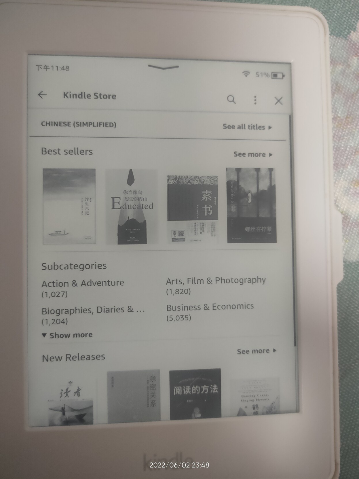 @711 我现在把手头的paperwhite3从中亚账号切到美亚账号了,原账号已下载的书籍没有被删除(甚至连“我的剪贴”也在)。商店变成美亚,中文书也有一些,里面分类有foreign language, 再里面Chinese traditional和 Chinese simplified。