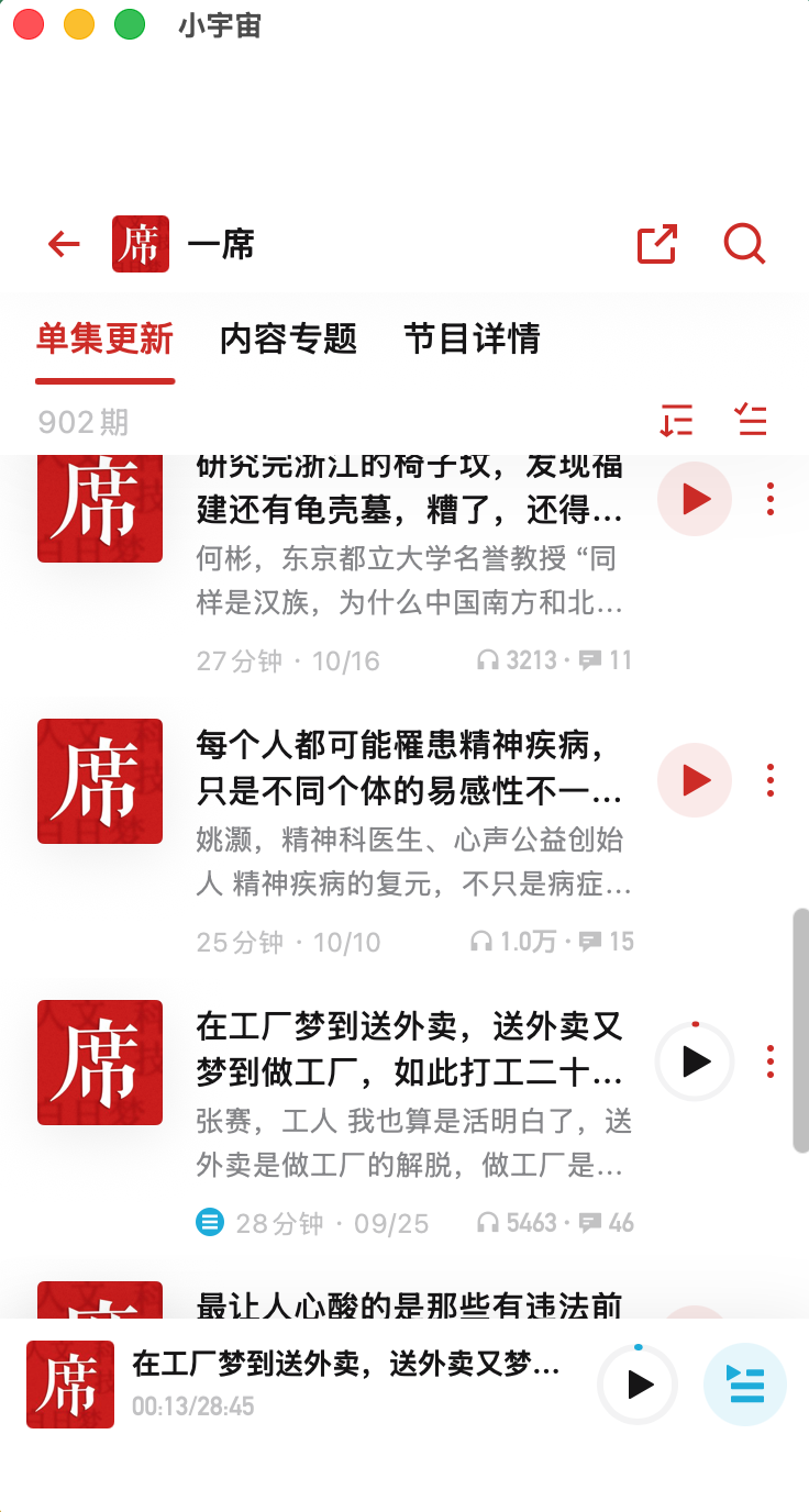 訂閱的賬號都刷完了,各種找內容來聽,結果發現了一席也在小宇宙上