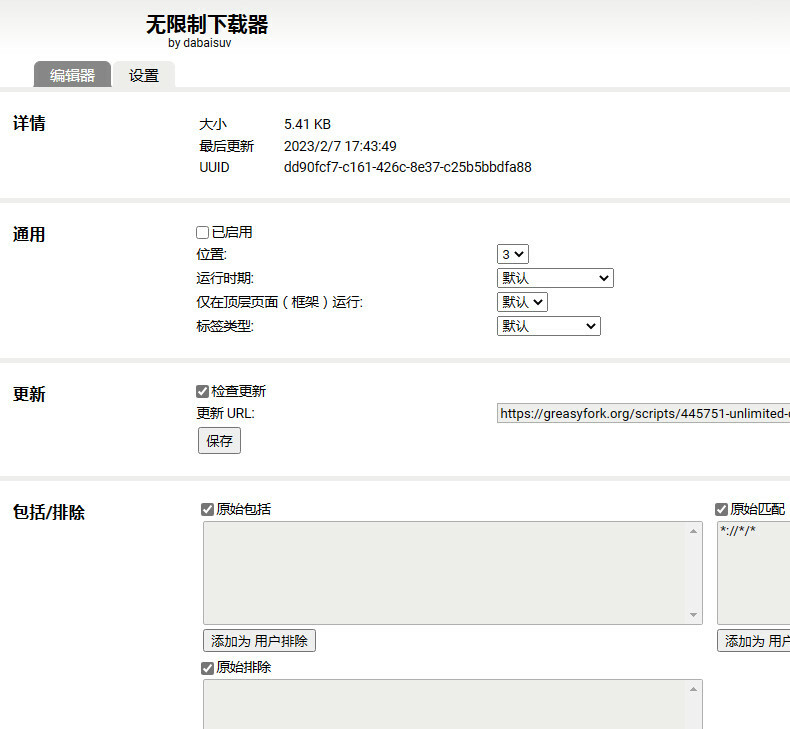 @shekelash 设置页如图。暴力猴插件里能选在什么页面运行。我还是把整个脚本都关了,到需要下载时再开。