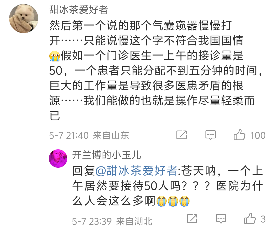 等到第二天就完全没有紧张的时间了因为人太!多!了!因为带我们的主任很厉害好多人都只挂她的号 一个上午接了六七十个人(还不算回诊)真的忙到飞起 一上午就都是:消毒铺巾上窥器采样本写单子交代病人(看病是主任来)根本坐不下。。。。水也没空喝 很多病人紧张说让我轻点我也尽量轻但是这东西不用力捅不进去啊啊啊啊啊啊啊啊啊啊b溃