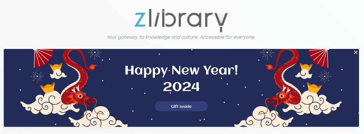 zlib换了banner,点进去是2023年度总结,拉到最后是新年礼物提示:找到网页上的龙点一下就给你加下载额度。