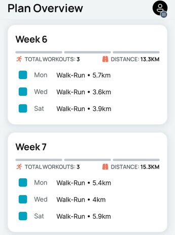 我是比较怕运动的人,以前用这类App就特别难坚持下去;但是用上runna之后的这一个多月我已经把五公里训练方案完成超过一半了。