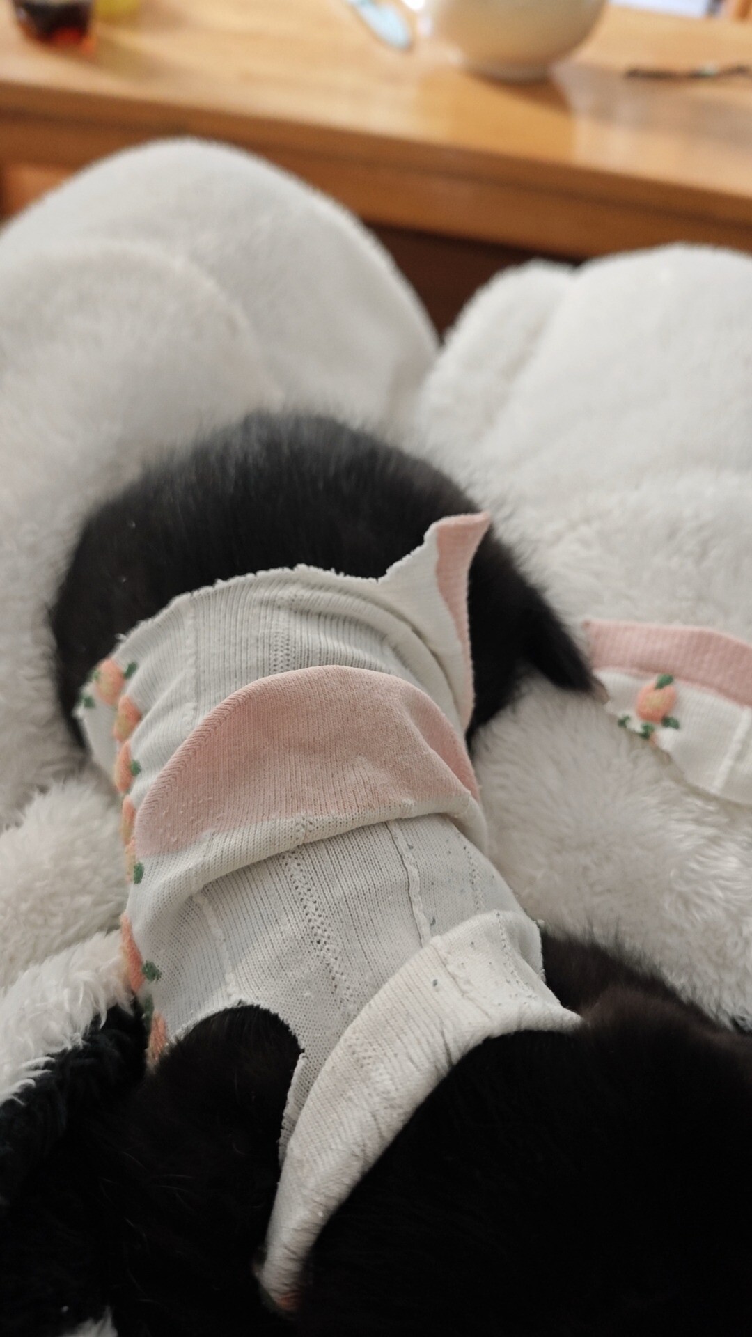 最近气温起起落落,实在担心猫感冒,根据原救助人的提议给他做了个袜子衣服保暖。但别人是用干净袜子做的,我是用真正的旧袜子做的。。感觉他现在很像童话里烧锅炉穿破烂衣服的灰姑娘。。看了眼天气,还有段倒春寒,于是在拼多多买了双珊瑚绒袜子,等到了给他剪好穿。。。(图片是灰姑娘的衣服上身图)